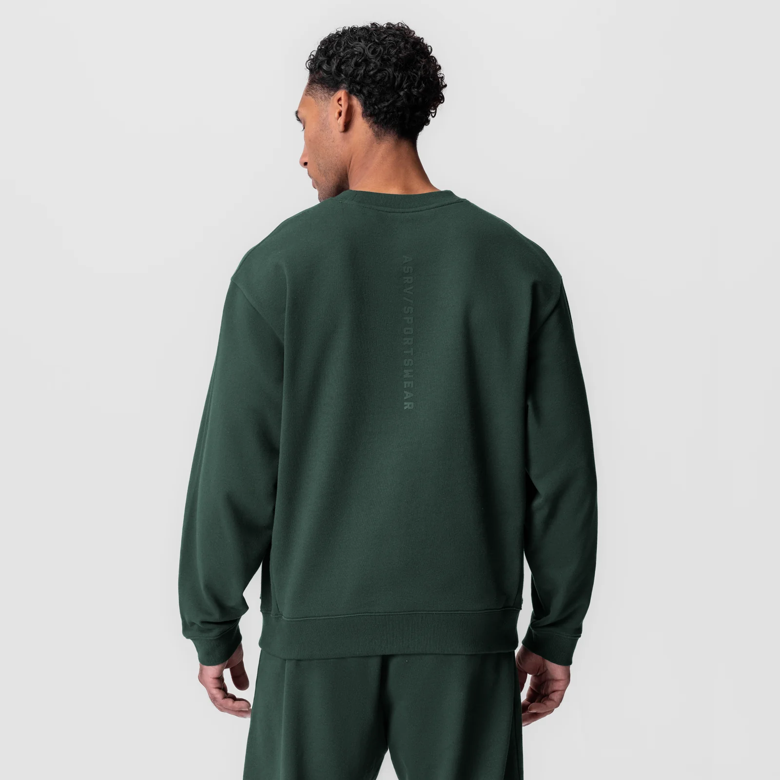 -70%0984. Herringbone Terry Crewneck - Forest Green—