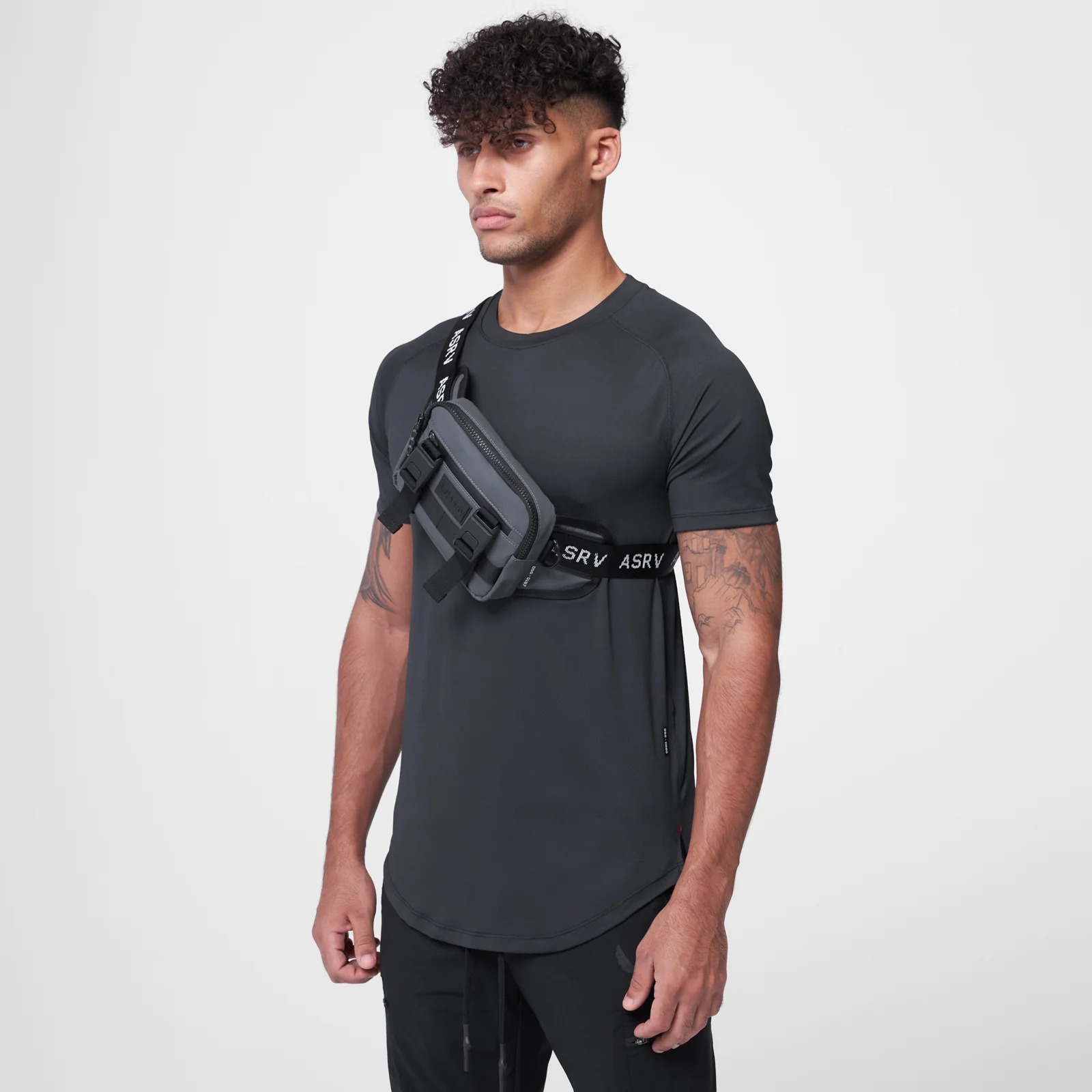 Small cross body bag with Mil-Spec nylon strap and Fidlock® magnetic buckle closure, featuring MOLLE-compatible webbing across the front and two buckle straps for attaching extra clothing or a water bottle. Main compartment zipper features aircraft-grade aluminum pull tab and bag front features taped zipper pocket.